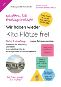 Kontakt und Anmeldung Anke Matschke, Kita-Leitung0561 68584anke.matschke@ekkw.dekindertagesstaette.kirchditmold@ekkw.de