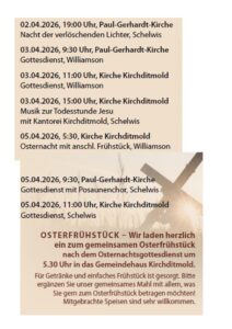 Am 26.3.2026 um 16 Uhr stellt Pfr.i.R. Ruth Gütter im Buchcafe der Paul Gerhardt Kirche das Sachbuch „Unverfügbarkeit“ des Soziologen Hartmut Rosa vor. Am 29.3.2026 um 9.30 Uhr wird sie dazu auch einen Literaturgottesdienst halten. Hartmut Rosa ist ein bekannter Soziologe der sich viel mit den Bedingungen des Zusammenlebens in den modernen Gesellschaften befasst und …
